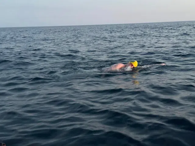 HOLLAND, MI (WHTC-AM/FM, Jul. 24, 2025) – One Lakeshore man’s individual long-distance swimming effort has fallen short, while another man’s team excursion nears.