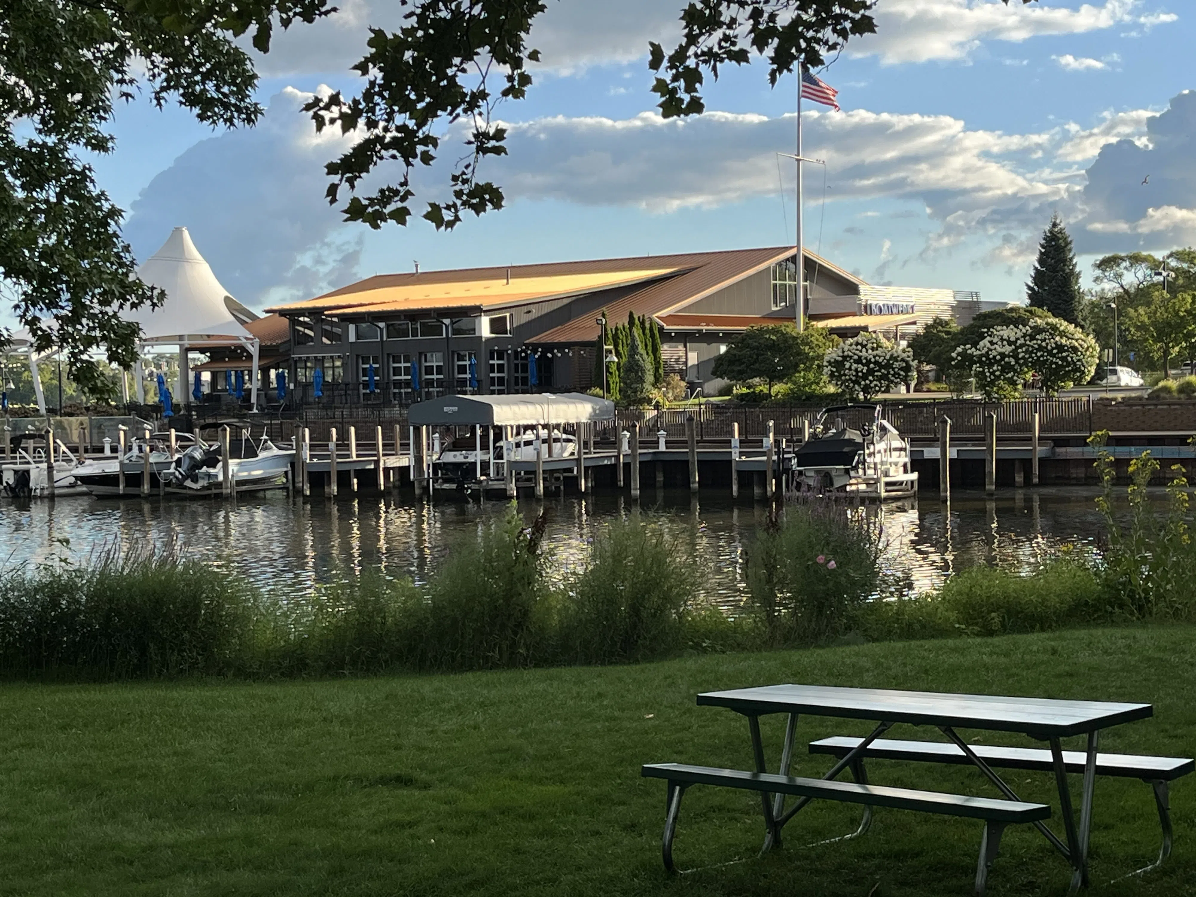 Aug. 25, 2025; Holland, MI, USA; Boatwerks Restaurant, as seen from Kollen Park. Mandatory Credit: Gary Stevens-Midwest Communications