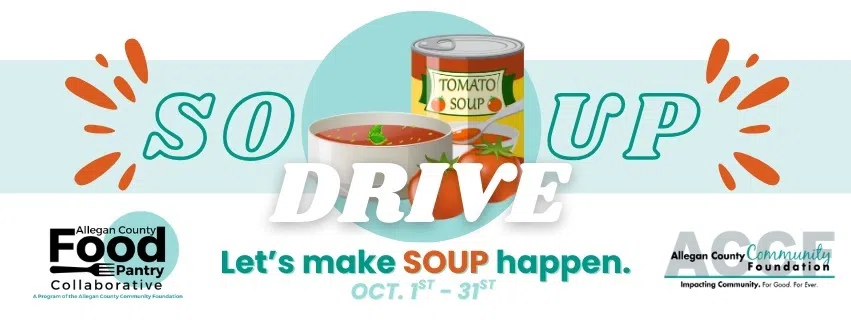 Throughout the month of October, this arm of the Allegan County Community Foundation will be collecting cans of soup, as well as money, in its “Souptober” initiative. Stephanie Calhoun, President/CEO of the Foundation, says that this will benefit the ongoing food insecurity issue that plagues many in the county.